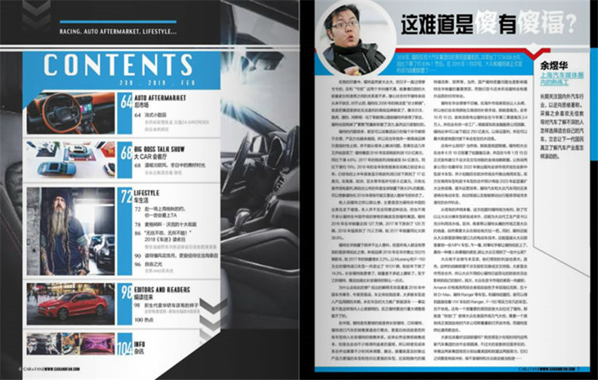《車迷》雜志與國內外汽車廠商溝通良好,一貫保持緊密合作,為讀者提供新全的汽車資訊、可讀性極佳的精彩文章、視覺沖擊效果極強的精美大片。