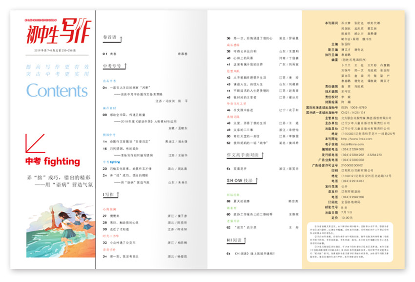 《初中生寫作》(月刊)創(chuàng)刊于2000年,多年來雜志內(nèi)容及形式方面與時(shí)俱進(jìn),并以其形式和內(nèi)容的豐富性及多樣性,贏得了不同階層讀者的喜愛與擁護(hù)。由中國教育學(xué)會(huì)中語會(huì)和遼寧少年兒童出版社合辦的期刊,以刊發(fā)初中生作品為主,特約名師、作家指導(dǎo)學(xué)生寫作,以“提高寫作更有效突擊中考更實(shí)用”為辦刊宗旨,《初中生寫作》連續(xù)兩屆榮獲“中國少兒優(yōu)秀期刊獎(jiǎng)”。