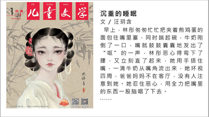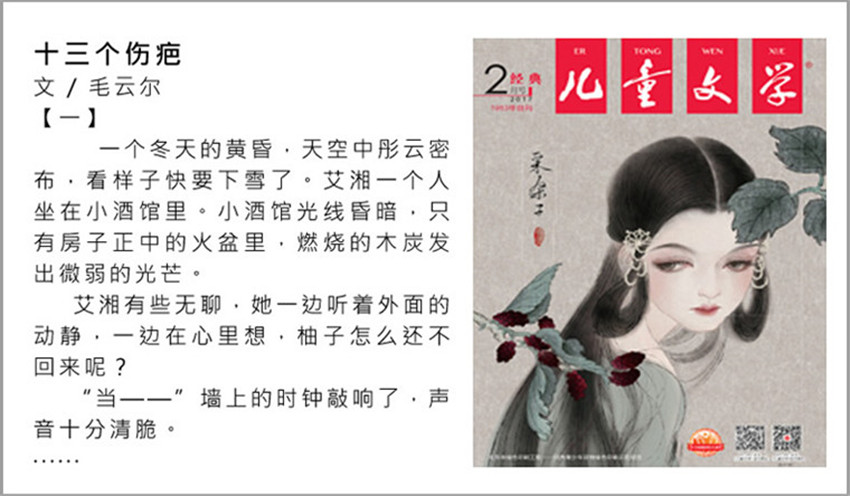 《兒童文學》(月刊)創刊于1963年,多年來雜志內容及形式方面與時俱進,并以其形式和內容的豐富性及多樣性,贏得了不同階層讀者的喜愛與擁護。由共青團中央和中國作家協會主辦,風雨多年,哺育三代人,其麾下匯集了幾代有名望的兒童文學作家,被譽為“中國兒童文學第一刊”。本刊刊登的文學作品,冰清玉潔,品位高雅,可讀性強,既教讀書,又教做人,在潛移默化中提高小讀者的寫作水平和綜合素質,是應試教育與素質教育的完美結合。