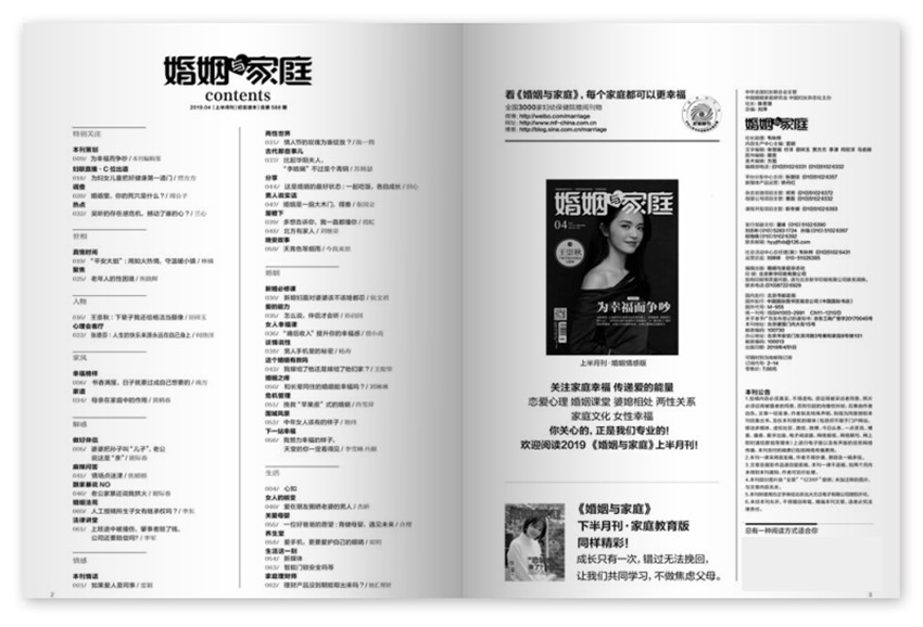 《婚姻與家庭》(半月刊)創刊于1985年,多年來雜志內容及形式方面與時俱進,并以其形式和內容的豐富性及多樣性,贏得了不同階層讀者的喜愛與擁護。解析和探討婚姻家庭領域的問題,傳播高尚的情操和科學的家教理念。