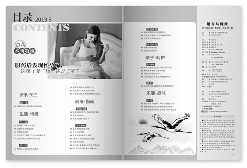 《婚育與健康》主要欄目:卷首語、本刊特稿、女子保健、優(yōu)生指南、情緣在線、孕育新知等。