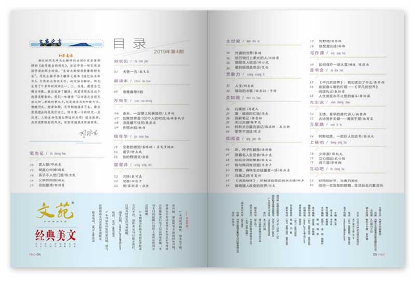 《文苑·經典美文》主要欄目:真、趣、人、美、風雅頌、詩禮樂、智、經典主題、閱讀留言。