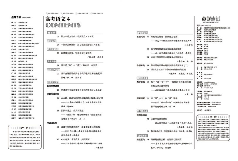 從辦刊宗旨來看,雜志立足于中小學教學的實際需求,強調理論與實踐的深度融合。它不僅關注課堂教學的動態過程,更注重對教學方法、教學策略的系統總結與反思。通過刊發高質量的教學案例、課堂實錄和教學反思文章,幫助教師深入理解課程標準,優化教學設計,提升教學效率。同時,刊物高度重視考試評價體系的研究,尤其聚焦中高考等重要考試的命題動向與趨勢分析。通過對歷年真題的深度解析,揭示命題規律,探討核心素養導向下的試題命制原則與技巧,為教師把握考試方向、科學備考提供有力支持。