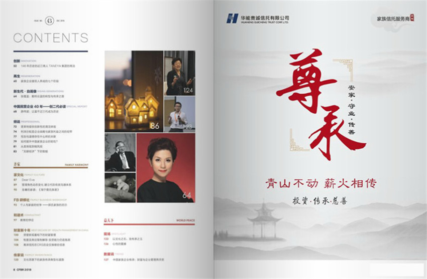 《家族企業》(月刊)創刊于2015年,多年來雜志內容及形式方面與時俱進,并以其形式和內容的豐富性及多樣性,贏得了不同階層讀者的喜愛與擁護。有“治業、修身、齊家、益天下”四大版塊,秉承只有中國的傳承才能傳承中國。