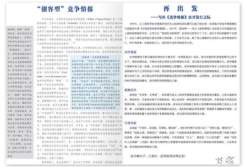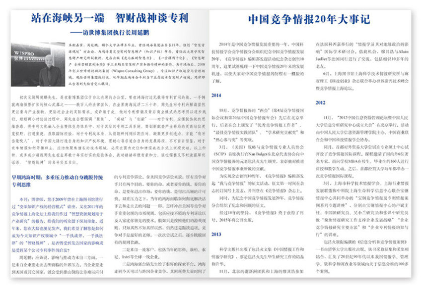 《競爭情報》(雙月刊)創刊于2004年,多年來雜志內容及形式方面與時俱進,并以其形式和內容的豐富性及多樣性,贏得了不同階層讀者的喜愛與擁護。旨在為關注研發創新、戰略規劃、市場競爭的人士提供新的、開拓視野、指導實踐的情報資訊、案例、方法和工具等內容。
