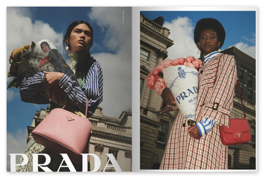 精彩“飾”界從左至右灰色針織內搭胸衣綠色薄紗無袖襯衫灰色連褲襪流蘇半裙綠色Saff iano皮軤提包銀色瑪麗珍鞋均為Prada紫色內搭襯衫色長袖針織衫灰色呢子半裙流蘇頸飾Vanity系列腰包Symbole系列手袋均為Prada鉚釘尖頭鞋Miu Miu紫色無袖襯衫V領針織衫呢子西褲紅色領帶紅色Saffian。
