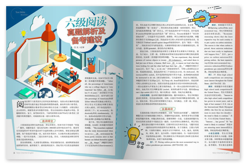 《新東方英語》雜志主要內容為實用的考試技巧輔導、的留學資訊、系統的異域文化介紹以及雋永的美文賞析。