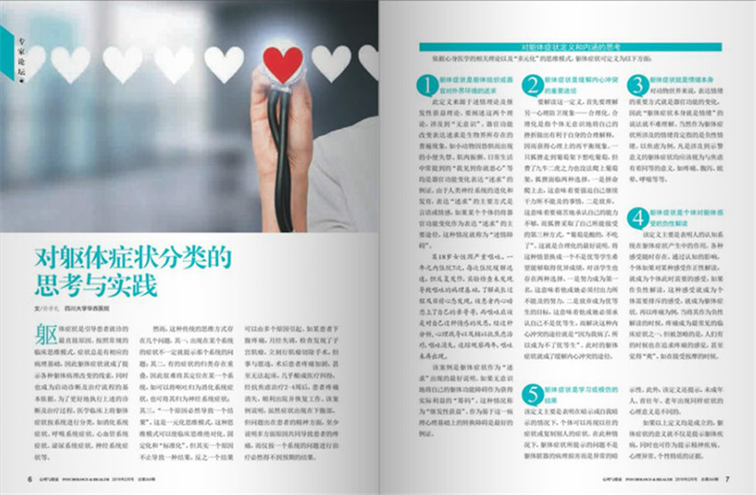 《心理與健康》雜志緊緊把握時代脈搏,所選取知識都是與生活息息相關,很有時代感的知識,講解非常詳細,可讀性強,深入淺出,是一本開闊視野、開拓思維的雜志。一本塑造正確,健康的價值觀的雜志,多年以來始終以弘揚人類優秀文化為己任,堅持把社會效益放在首位,努力貼近讀者生活,深受廣大讀者的青睞。