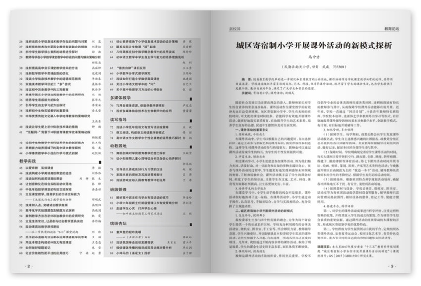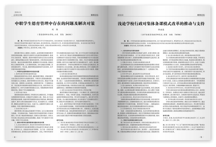 《新校園》雜志是面向全國公開發行的教育教學類綜合性刊物,為山東省優秀期刊。雜志搭建起全國教育工作者之間學術交流、理論探討、經驗傳播、成就展示的教育類期刊平臺。