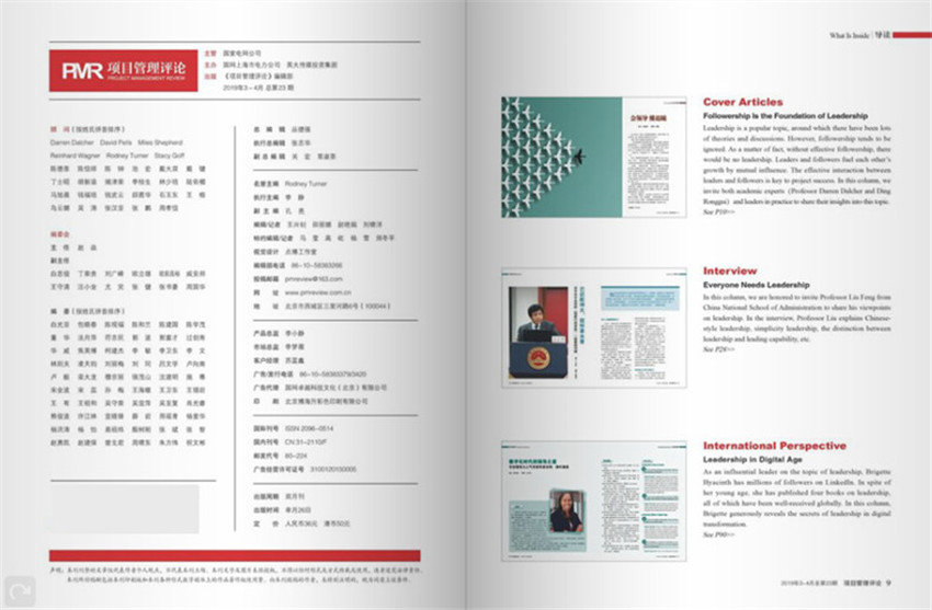 《項目管理評論》主要欄目:封面策劃、人物、首席觀點、專題研究、案例、國際視野、專家視點、職業脈搏、悅讀等。