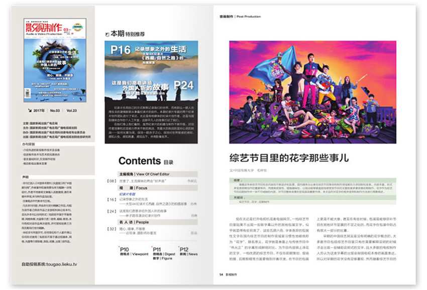 《影視制作》(月刊)創刊于1994年,多年來雜志內容及形式方面與時俱進,并以其形式和內容的豐富性及多樣性,贏得了不同階層讀者的喜愛與擁護。任何影片生產的第一步都是創作劇本,但動畫片的劇本與真人表演的故事片劇本有很大不同。