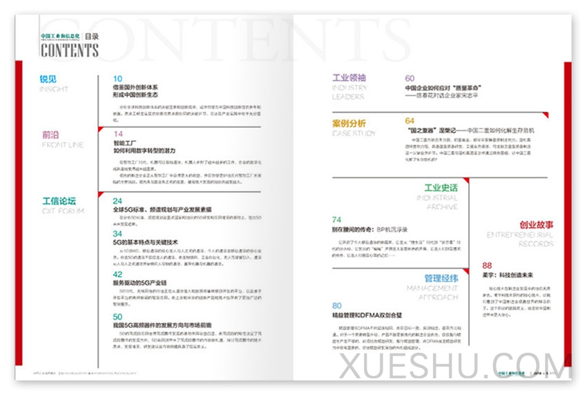 《中國工業(yè)和信息化》主要欄目:工經(jīng)論壇、工業(yè)領(lǐng)袖、視野、前沿、管理經(jīng)緯、專題研究等。