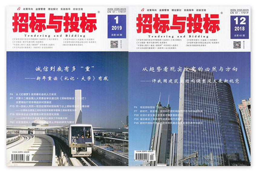 全國以“招標投標”命名,內容涵蓋招投標全領域(工程項目、貨物、服務),涉及招投標參與各方(招投標監管部門、招標人、投標人、機構、評標專家、交易平臺)的專業雜志。