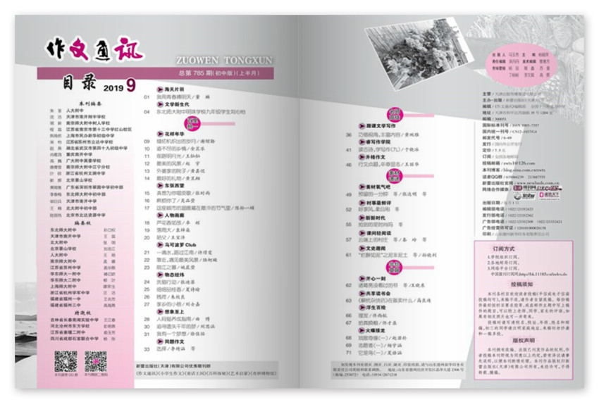 《作文通訊·初中版》主要欄目:作文指導、閱讀空間、作文精粹等。